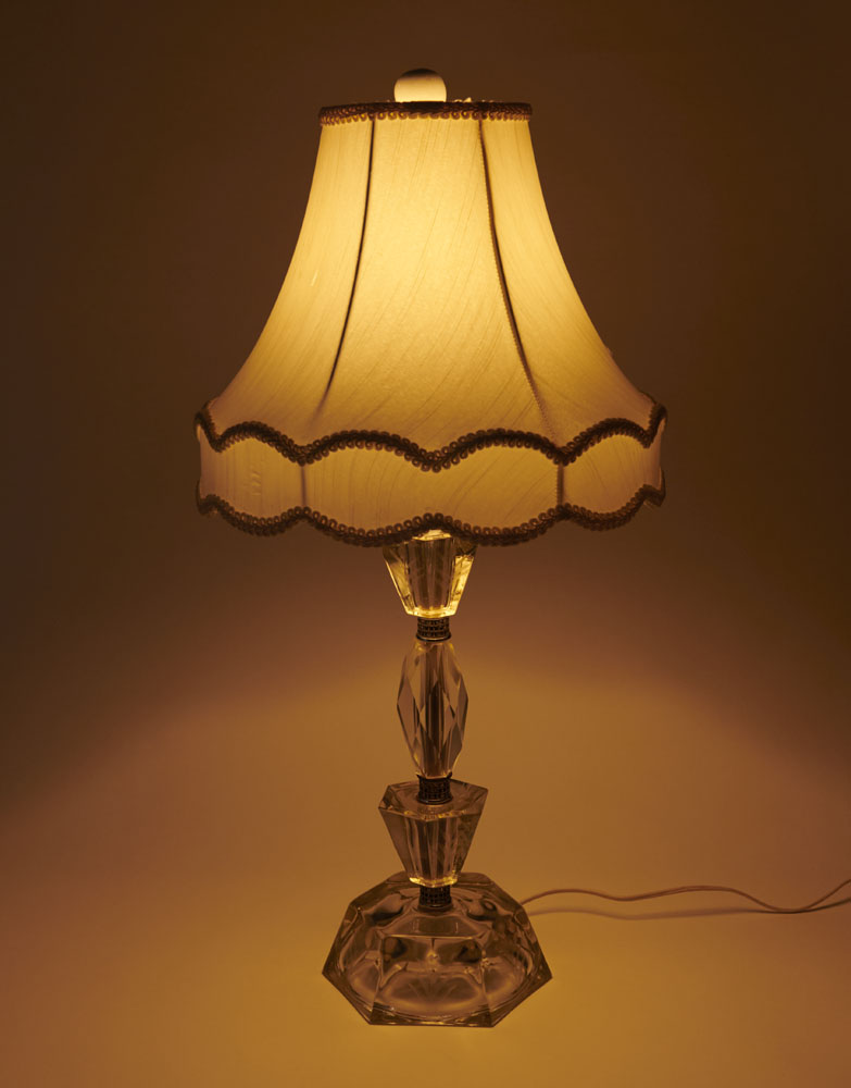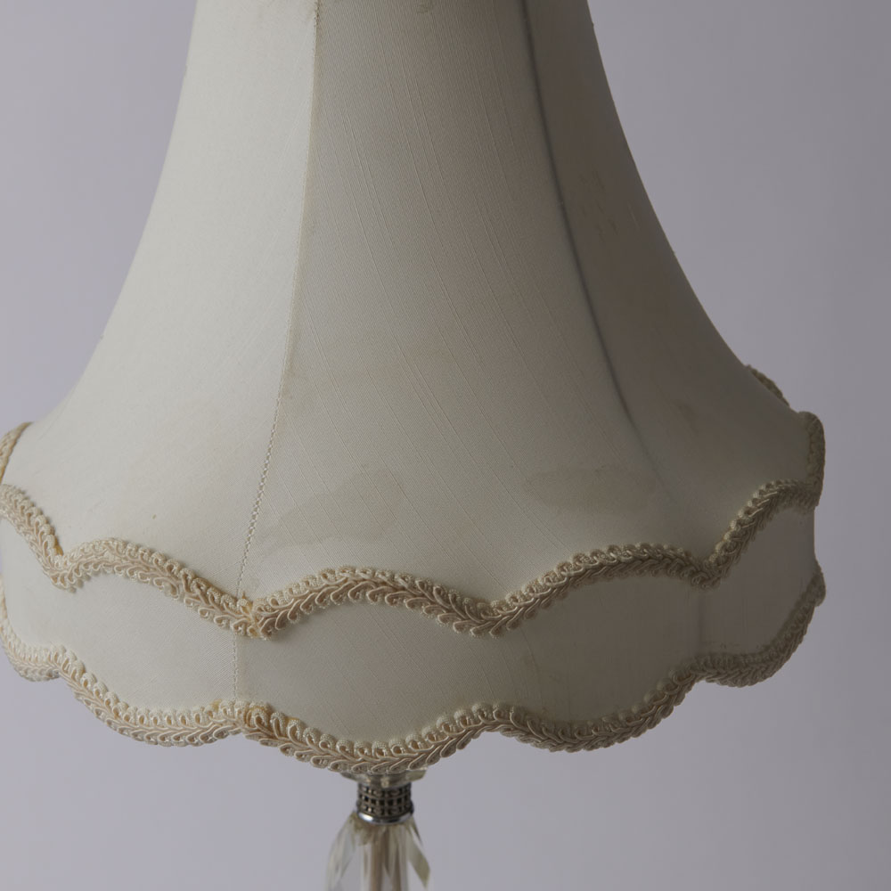 ミドルスタンド クリアガラス 六角形xリーフ彫刻 シェード ホワイトシルクダブルフリル
