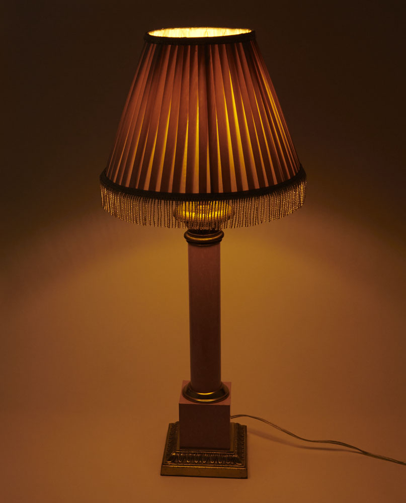 ロースタンド ピンク×ゴールド 大理石風 × シェード プリーツ ゴールドフリンジ