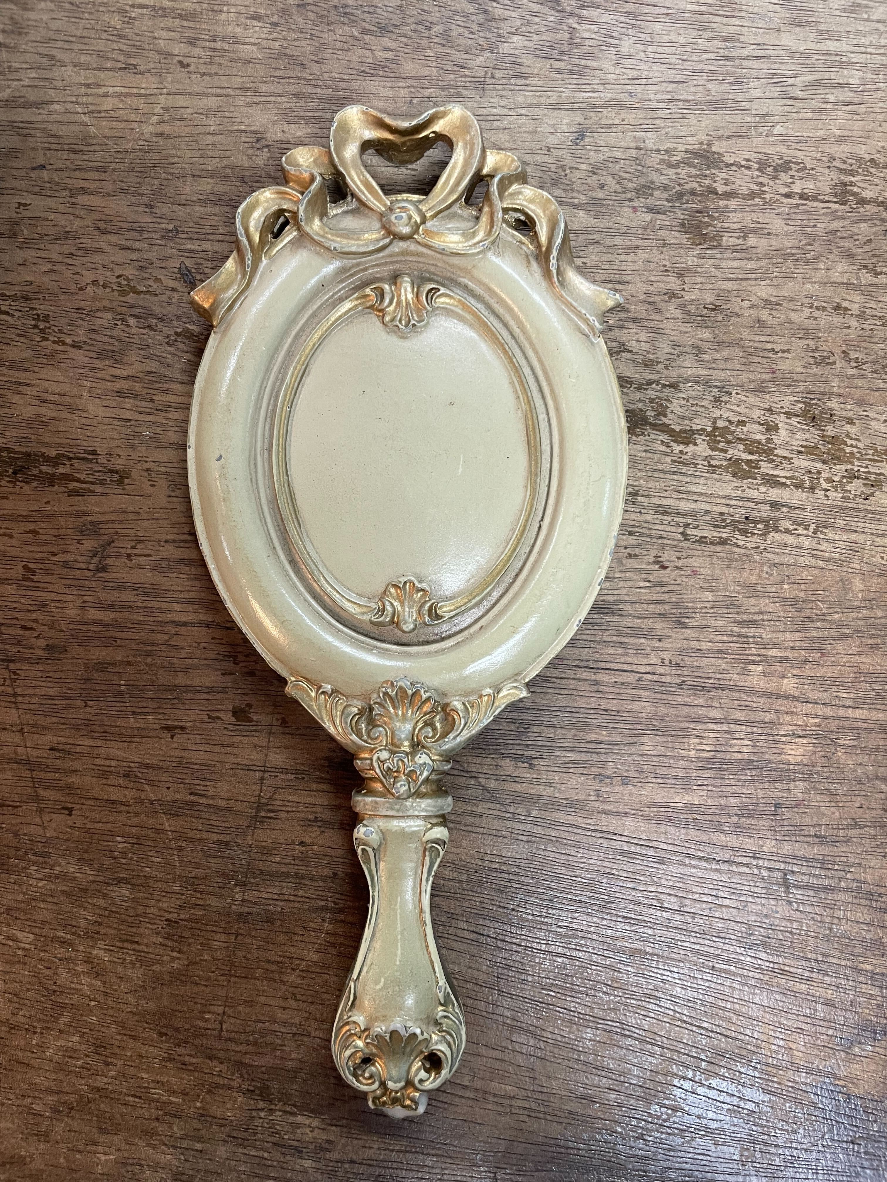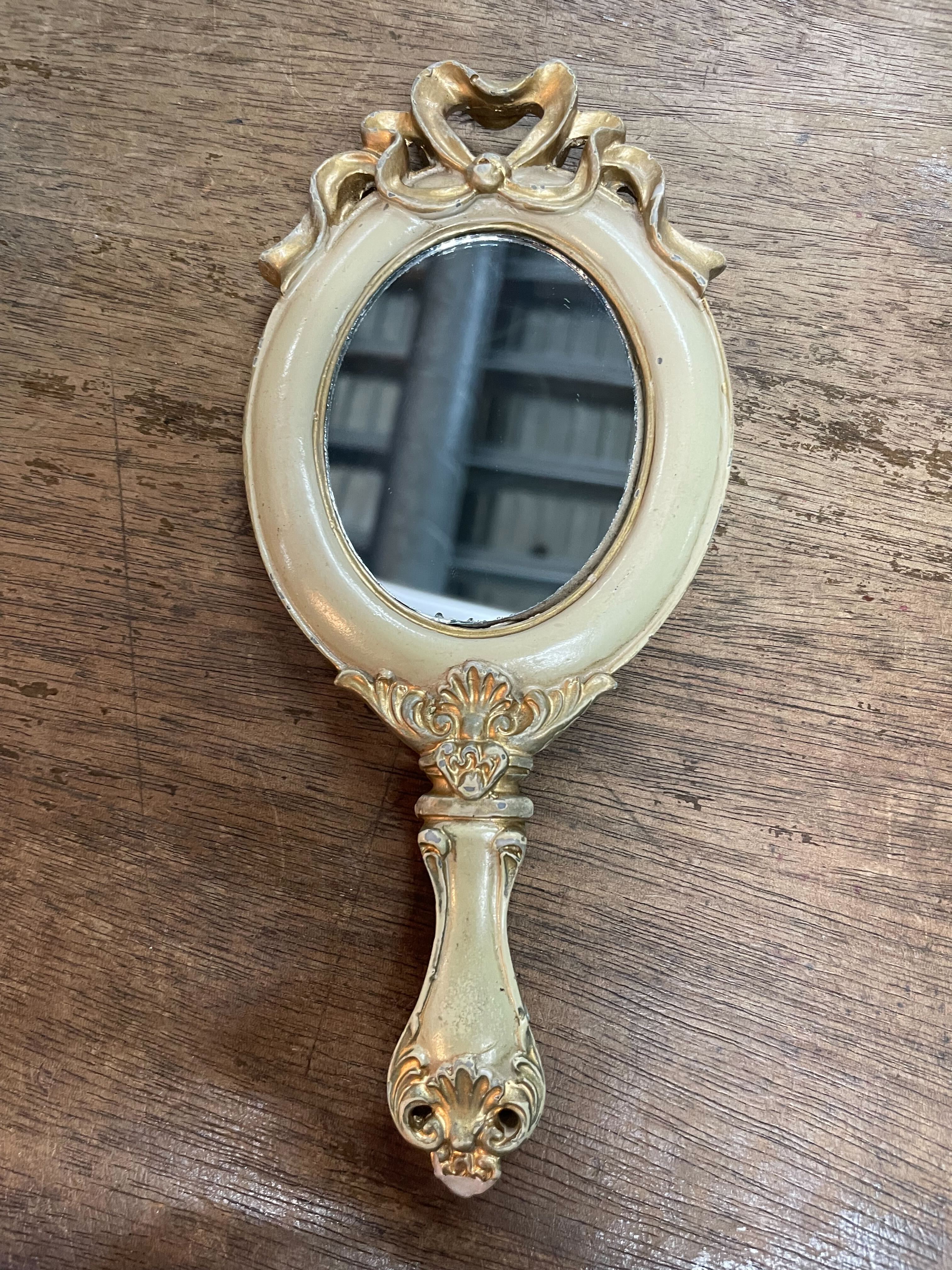 手鏡 ベージュ×ゴールド リボンモチーフ