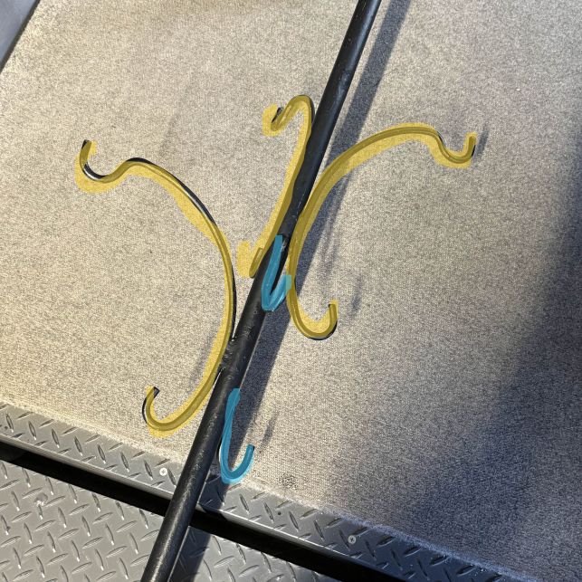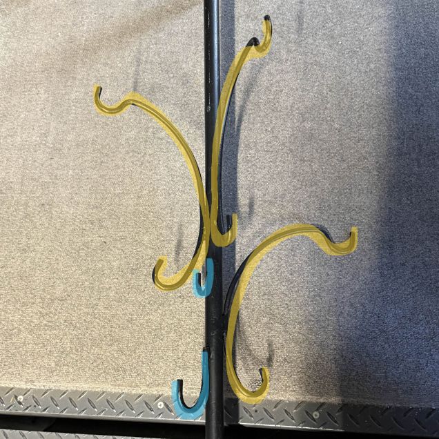 その他長いフック(黄)が3本、短いフック(青)が2本ついています