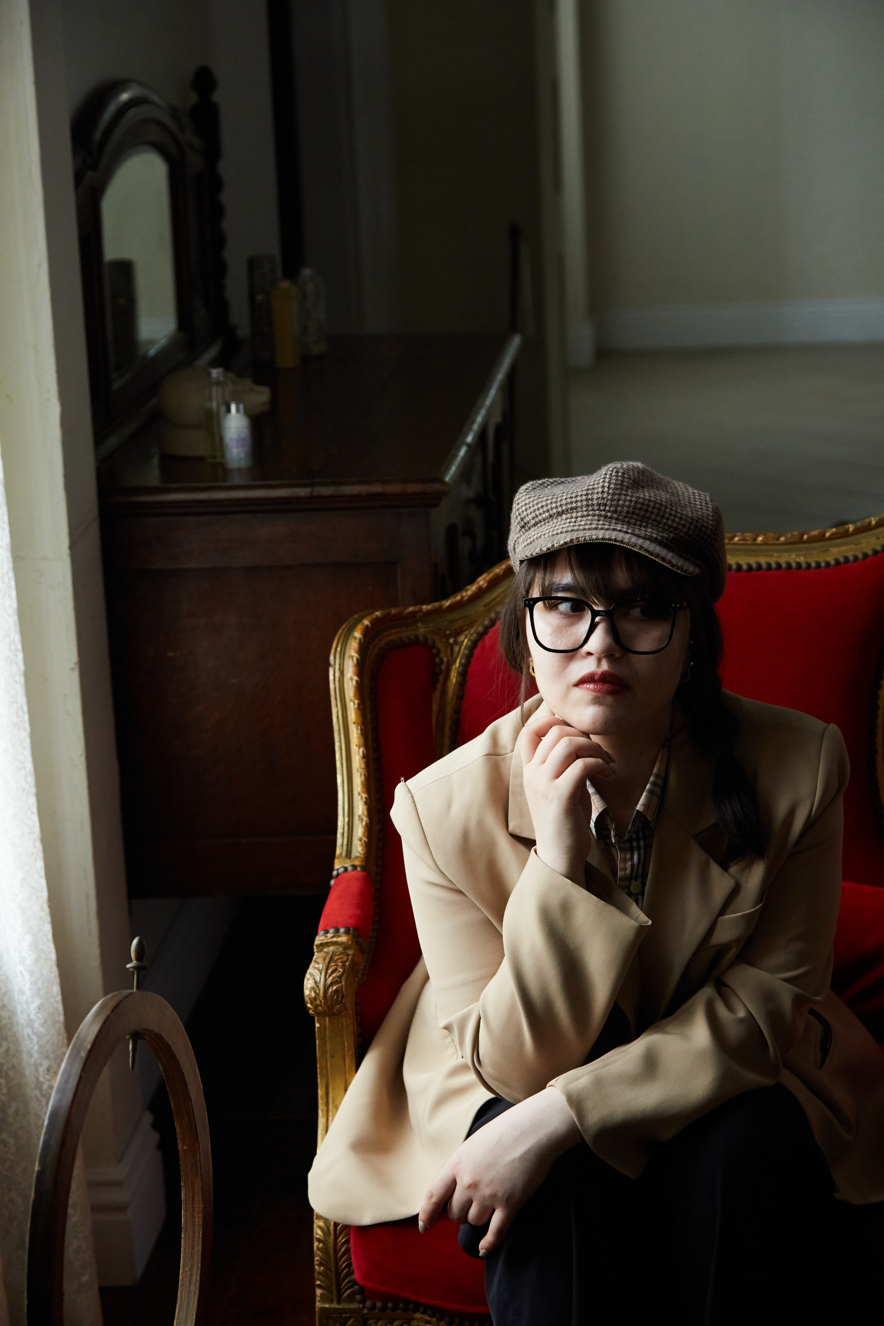 本棚を背景にすると重厚なイメージに、白壁を背景にすると明るいイメージに・・・